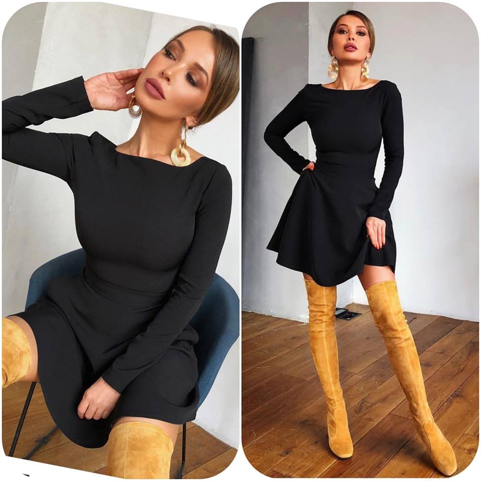 Минимализмът никога не е изглеждал толкова въздействащо. Тази елегантна черна рокля с дълъг ръкав и изчистена кройка е истинско модно оръжие. Скроена така, че да подчертае фигурата, тя съчетава класа, удобство и модерна визия в едно – перфектният избор за всяка уверена жена.
