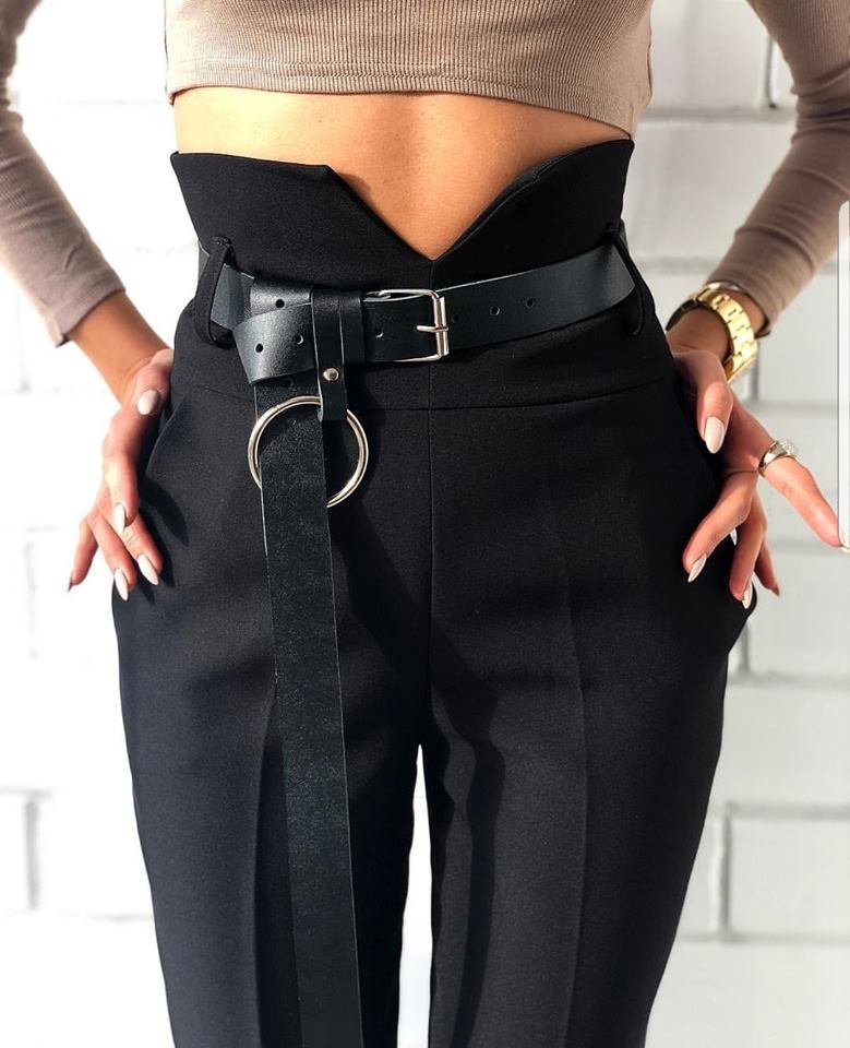 ? Създай силно и уверено излъчване с този черен панталон с висока талия и прав силует. Структурата му е създадена така, че визуално да подчертае линията на краката и да придаде модерен завършек на всяка визия.
