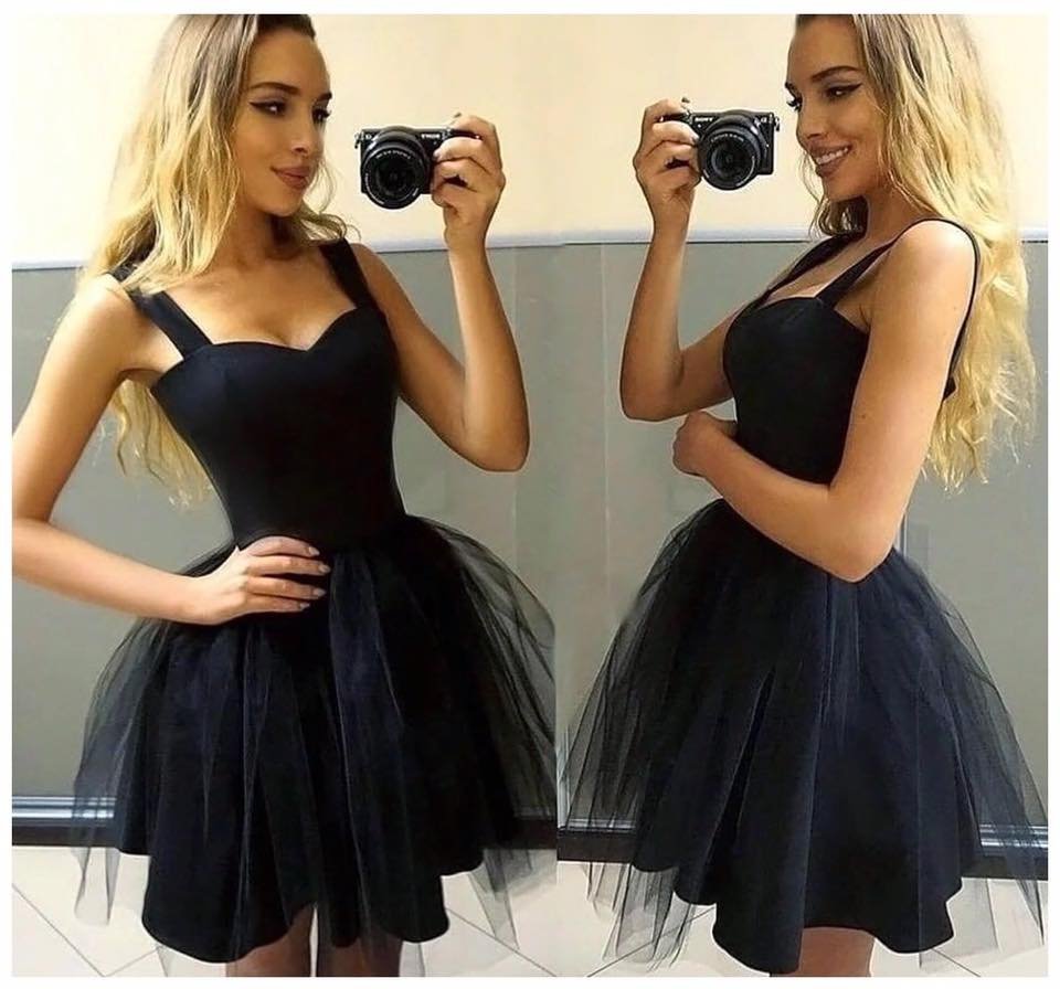 Провокирай с визия, която казва всичко – без да изричаш и дума. Тази черна рокля с тюлена пола и оформящ силует е създадена за момичето, което иска да бъде център на вниманието – без усилие. Елегантна, кокетна и дръзка.