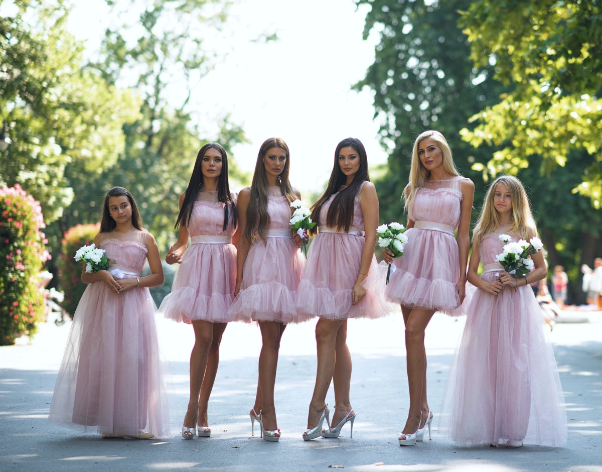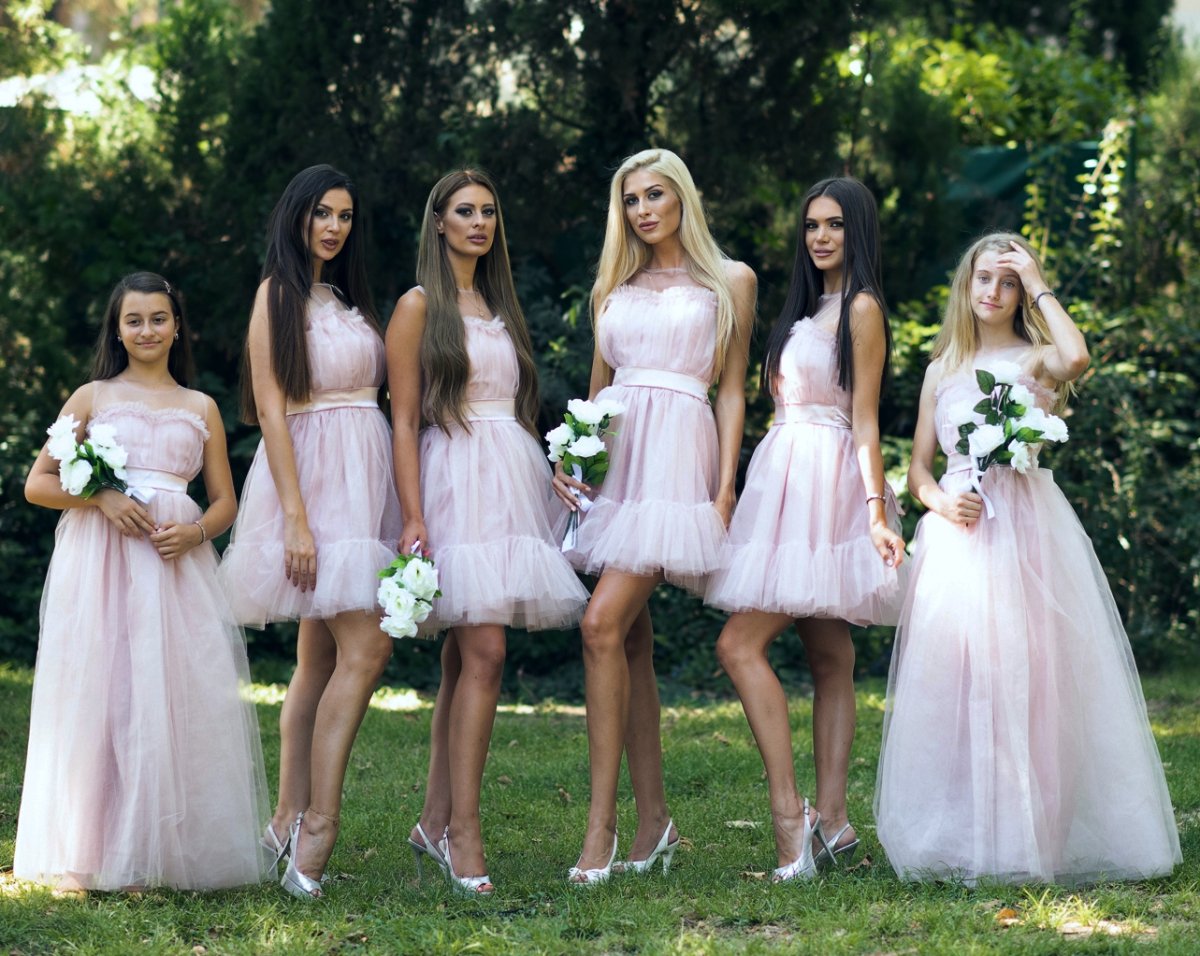 Тази ефирна рокля в пудрено розово съчетава романтика и игривост в идеалната визия за всяко сватбено тържество. Леката тюлена материя придава приказен обем, а сатенената лента в талията добавя изисканост и нежност. Перфектна за шаферки, момински партита и летни поводи, където стилът е задължителен.
