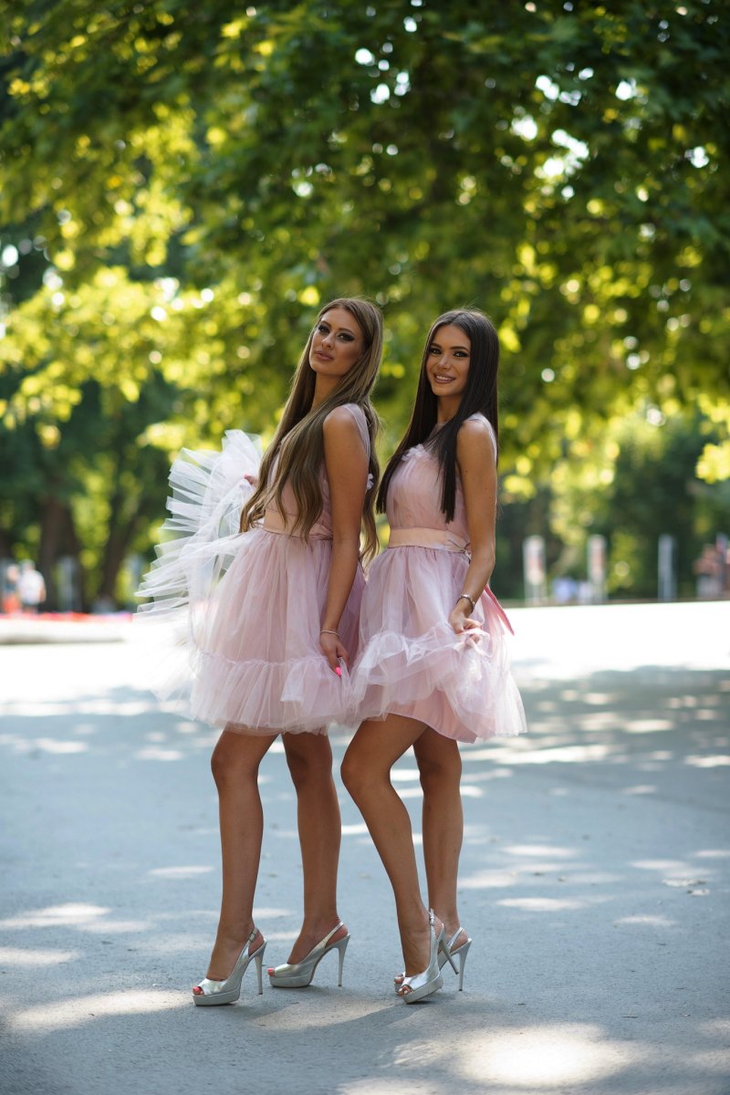 ✔ Къса рокля от фин тюл в пудрено розово