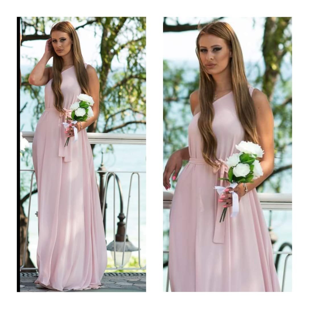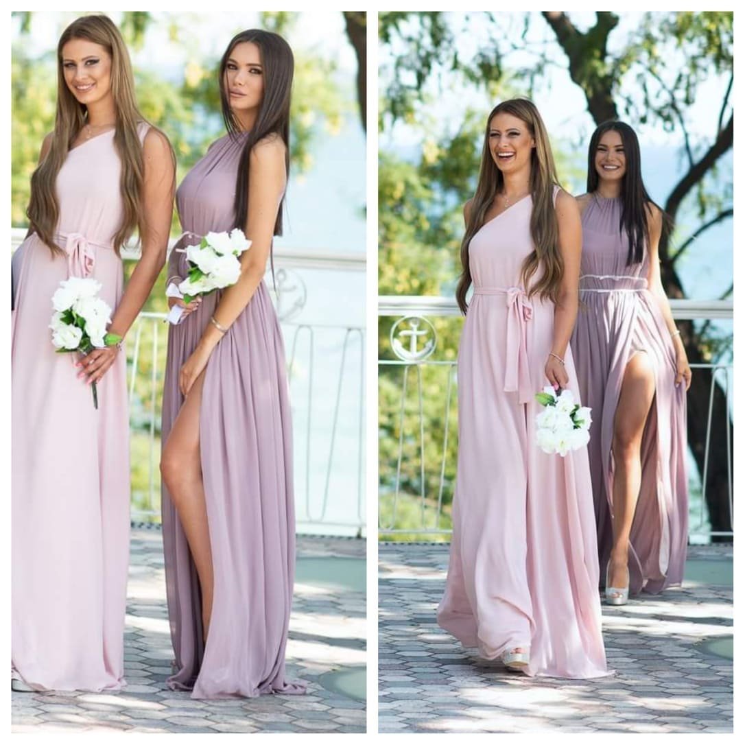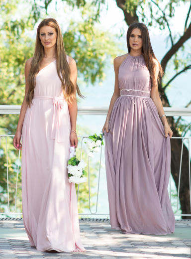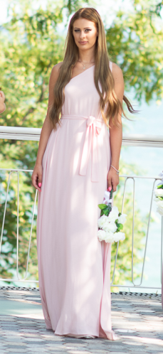 Дълга разкроена рокля с една презрамка