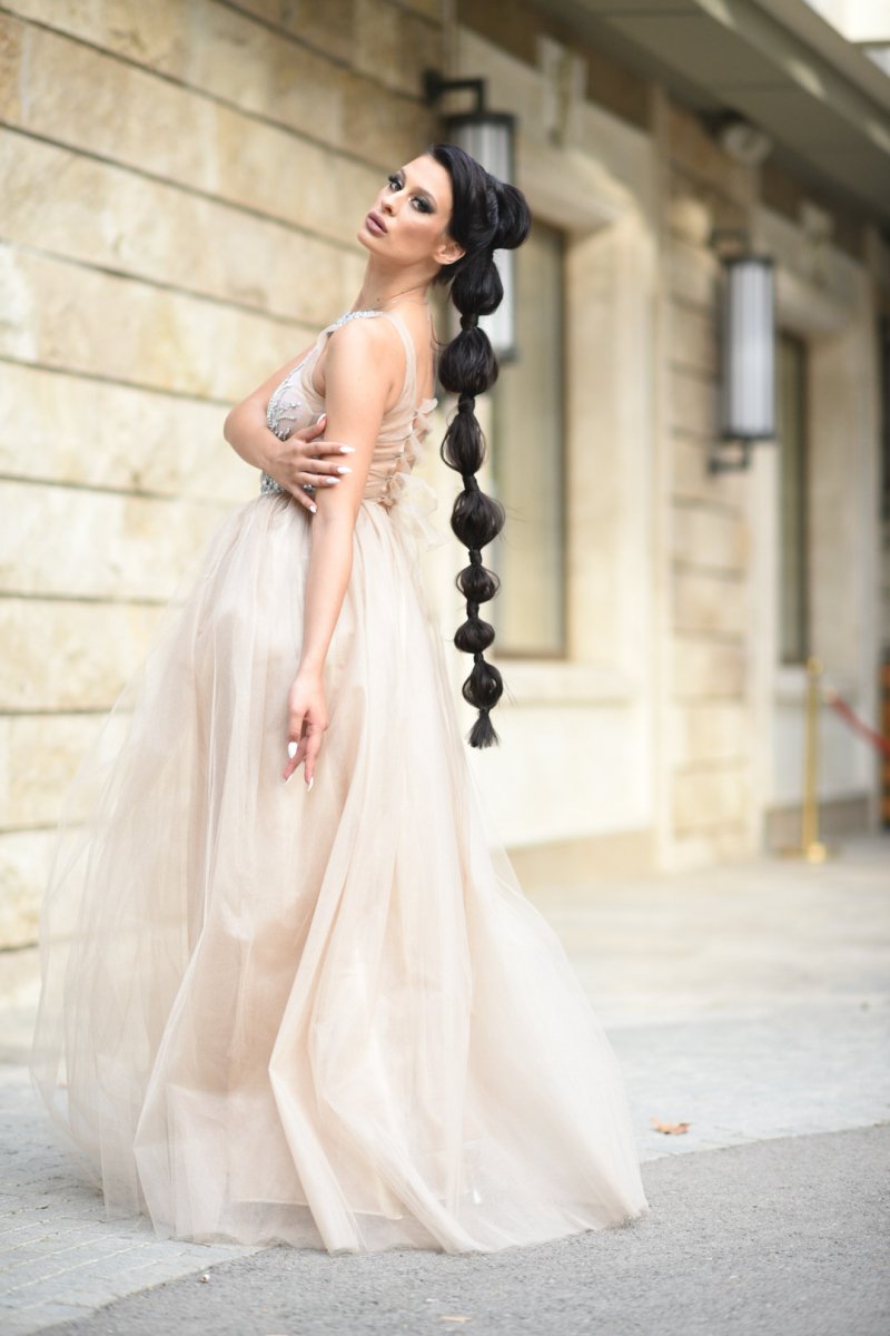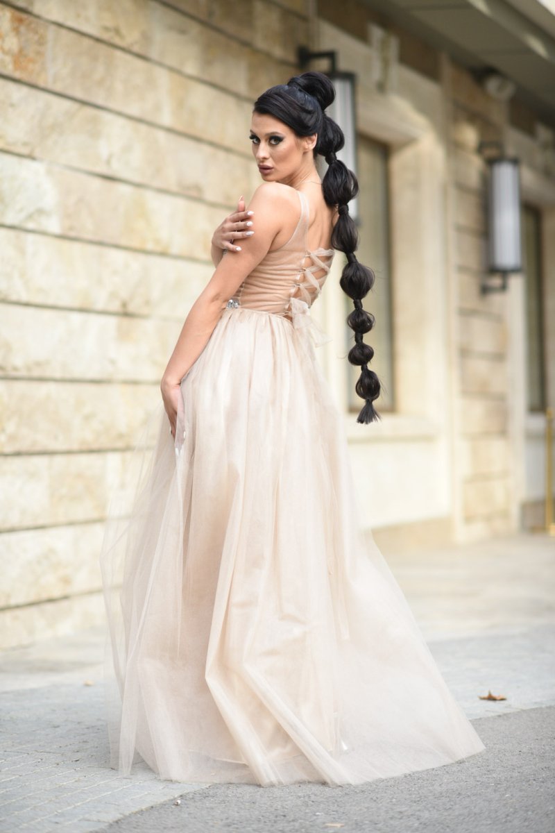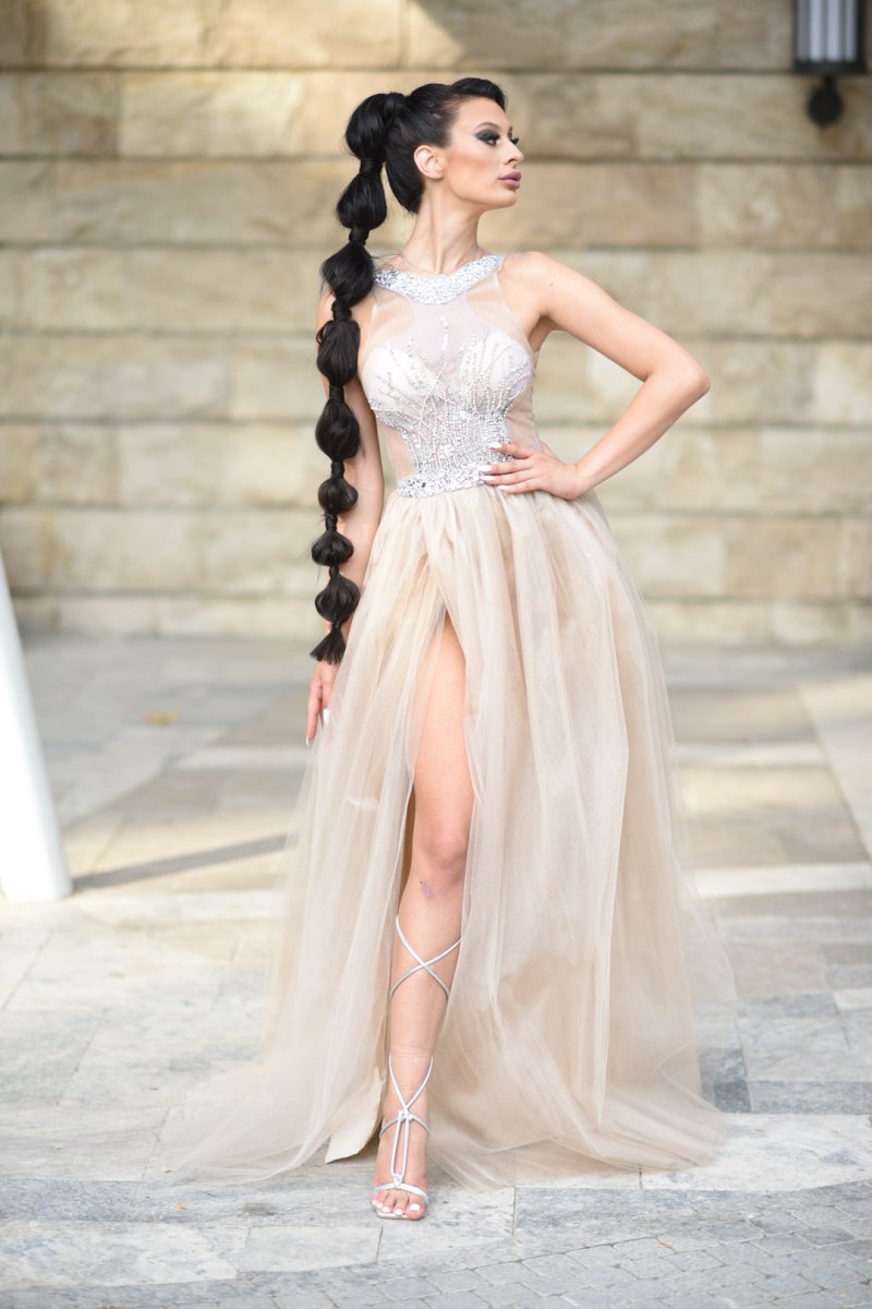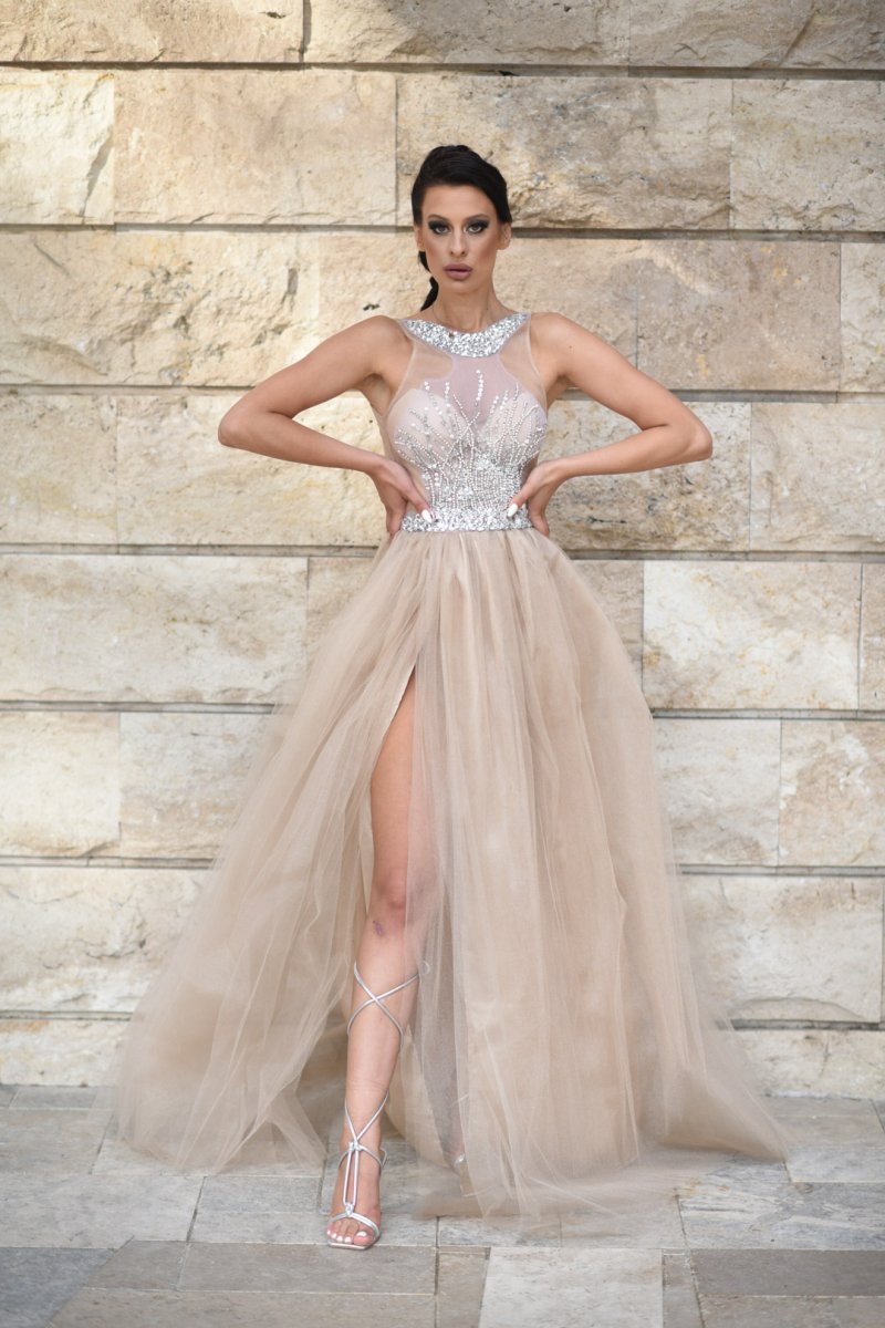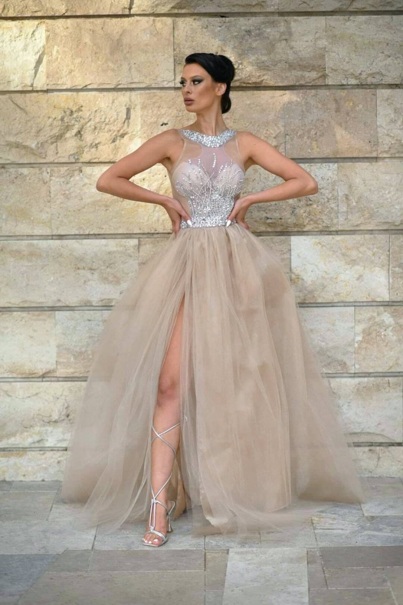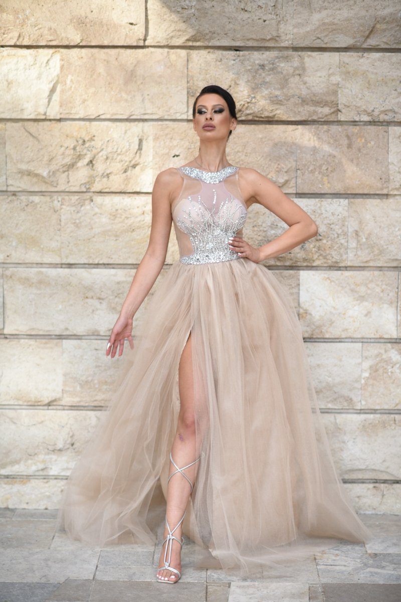 Начало МОДЕЛИ JNSECRET Дълга рокля с тюл и камъни