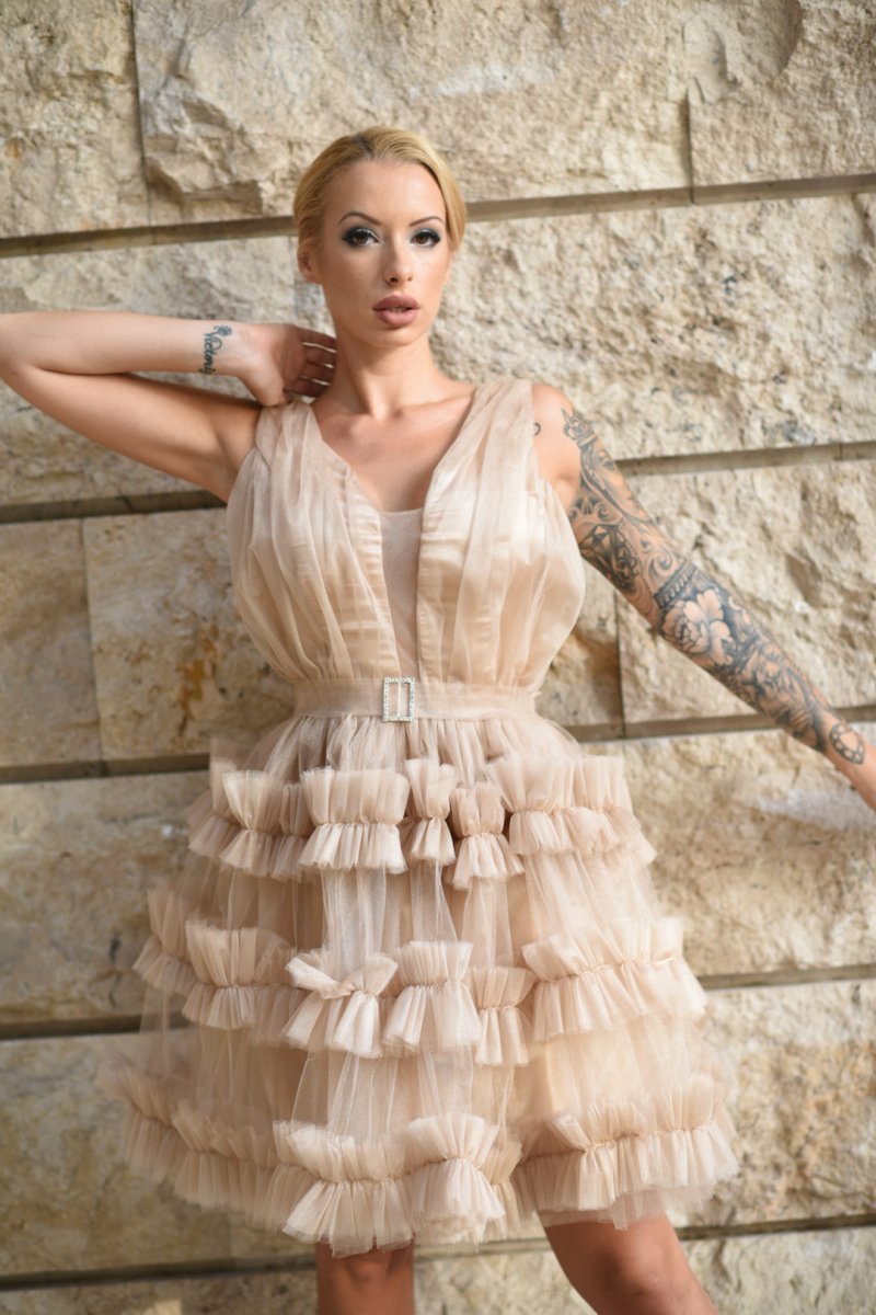 Къса рокля с тюл и волани