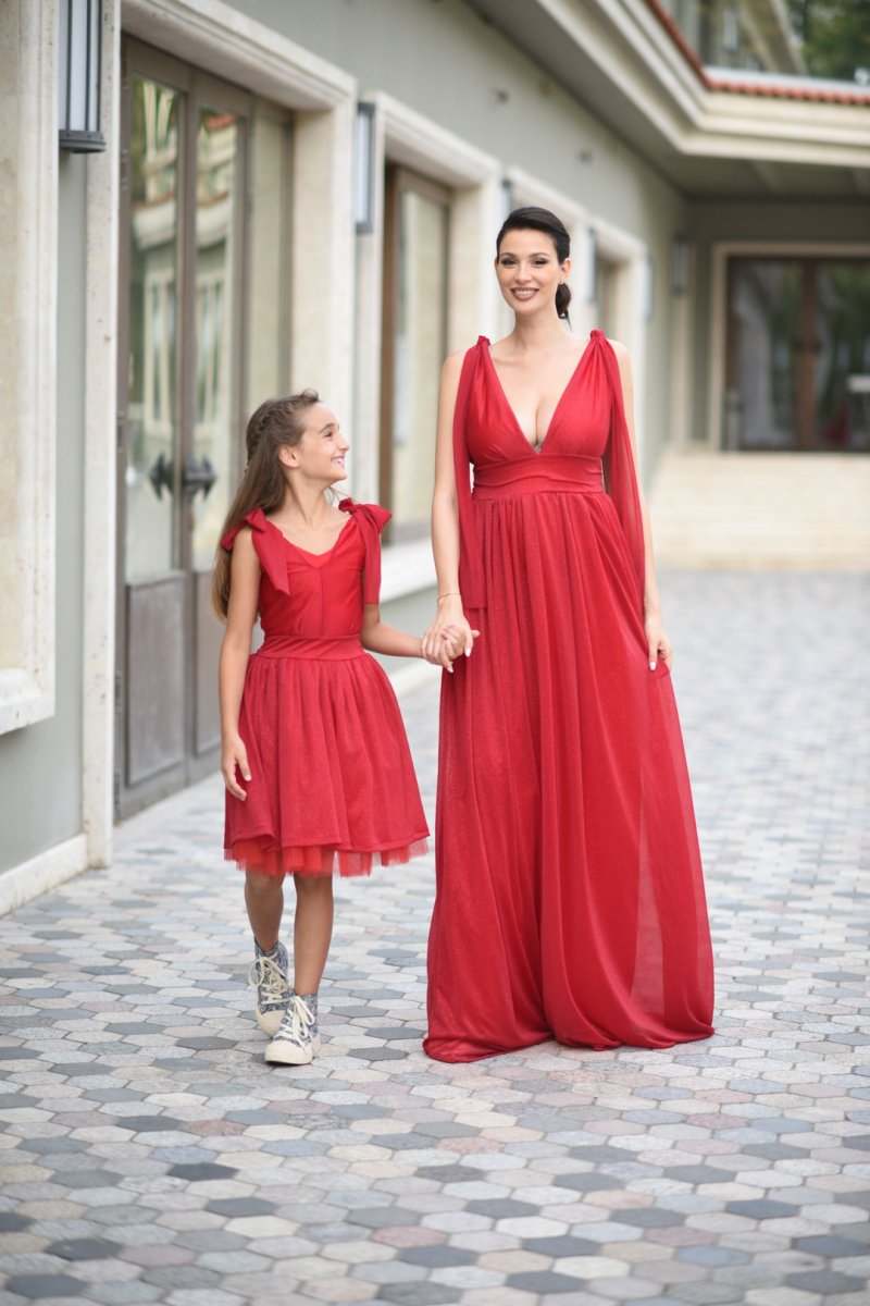 Готова ли си да се почувстваш божествено? Тази червена дълга рокля е създадена за жени, които искат да впечатляват със своята изтънченост и стил. Съблазнителното V-деколте, ефирните презрамки и свободно падащата пола подчертават женствеността с лекота и грация. Перфектният избор за сватби, празници, фотосесии и всяко събитие, където искаш да си неудържима.
