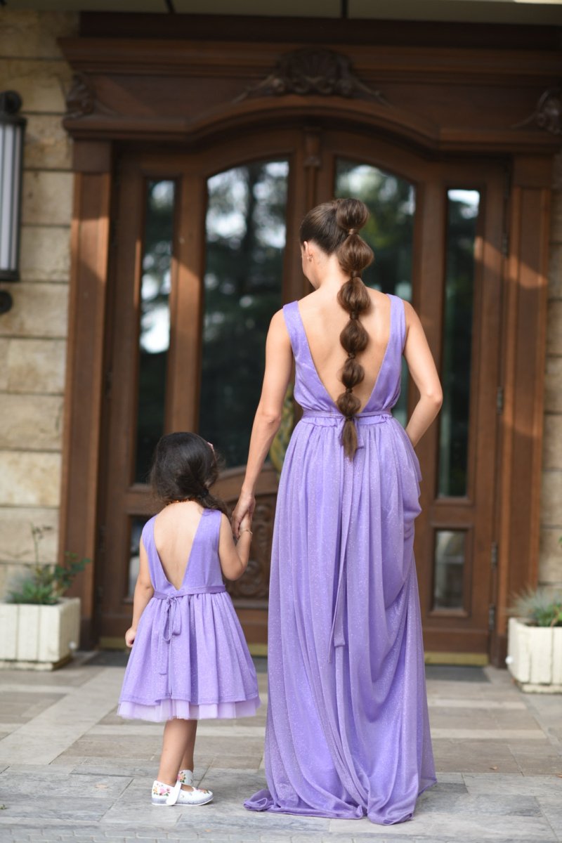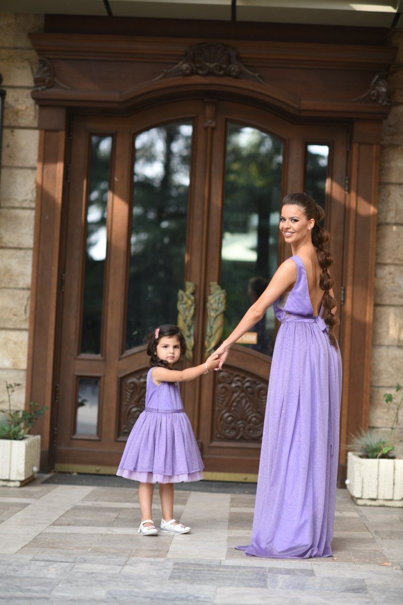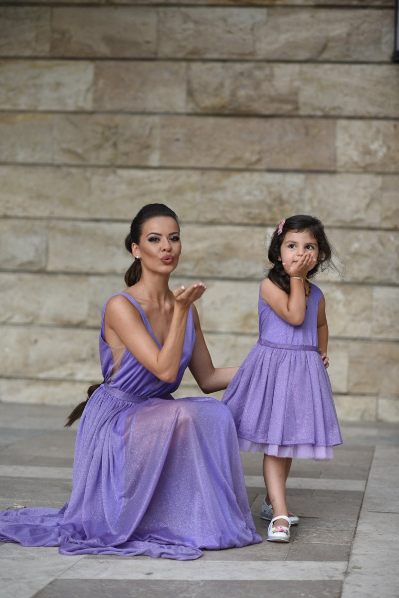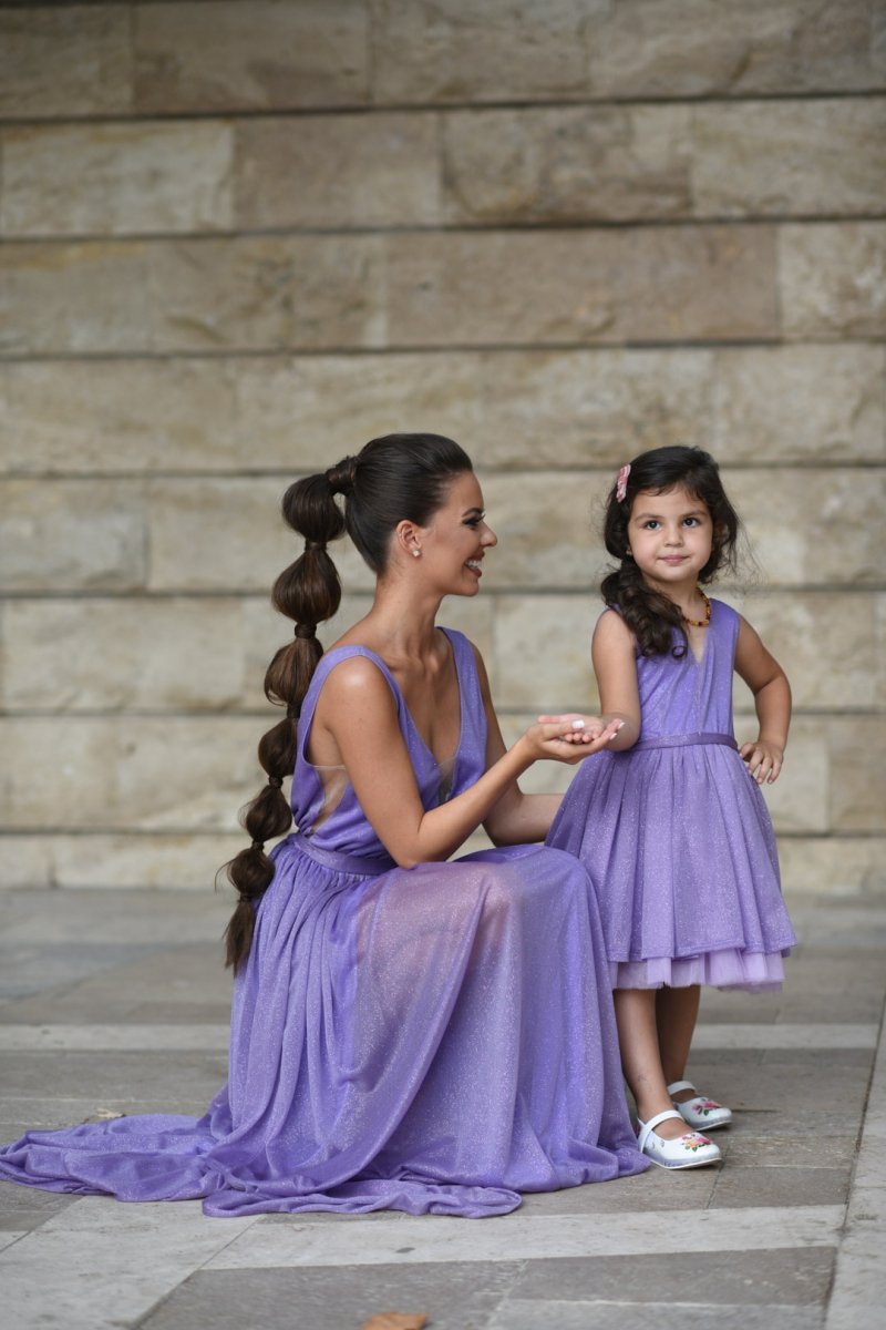 Начало МОДЕЛИ JNSECRET Комплект рокли за майка и дъщеря от блестяща лилава материя