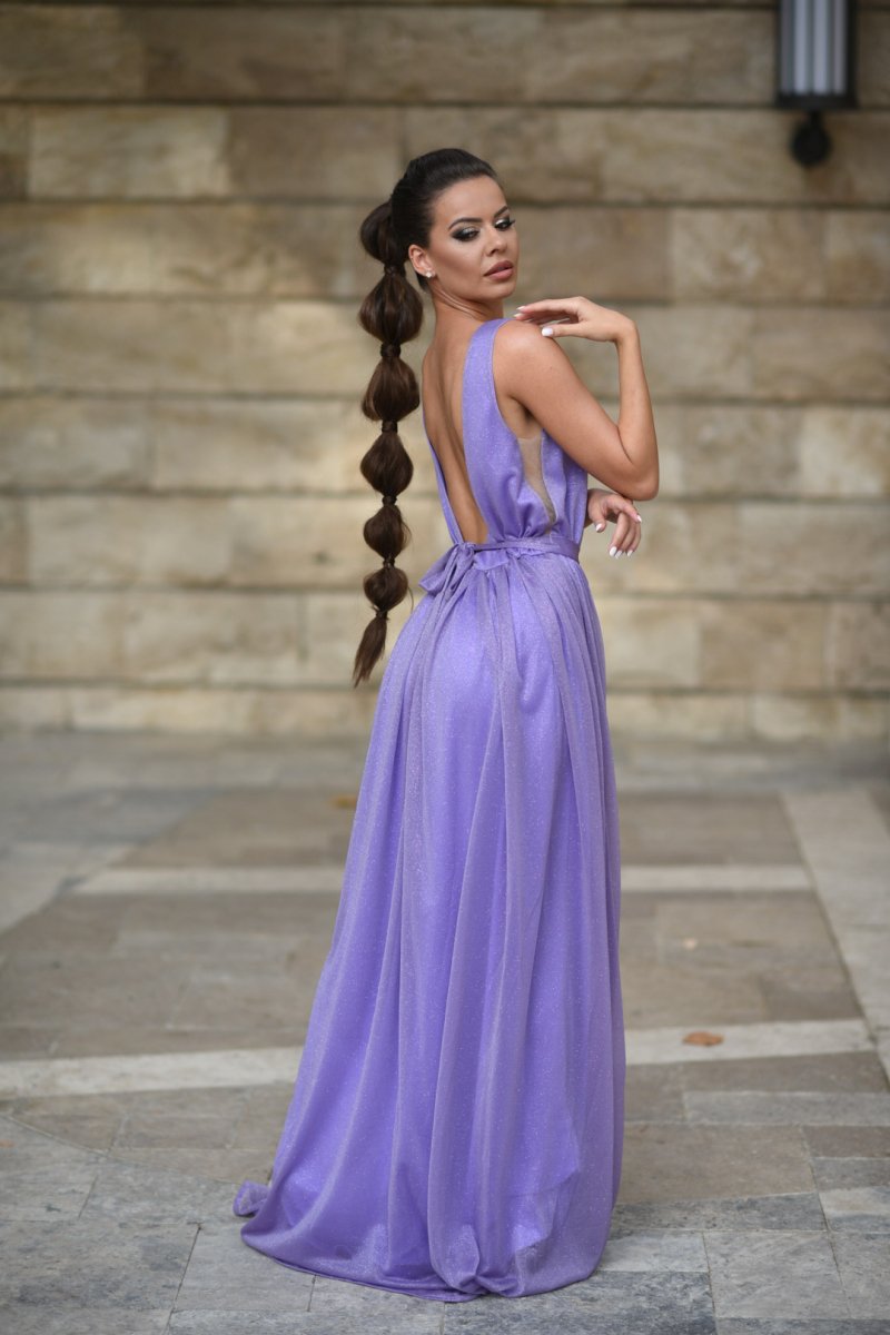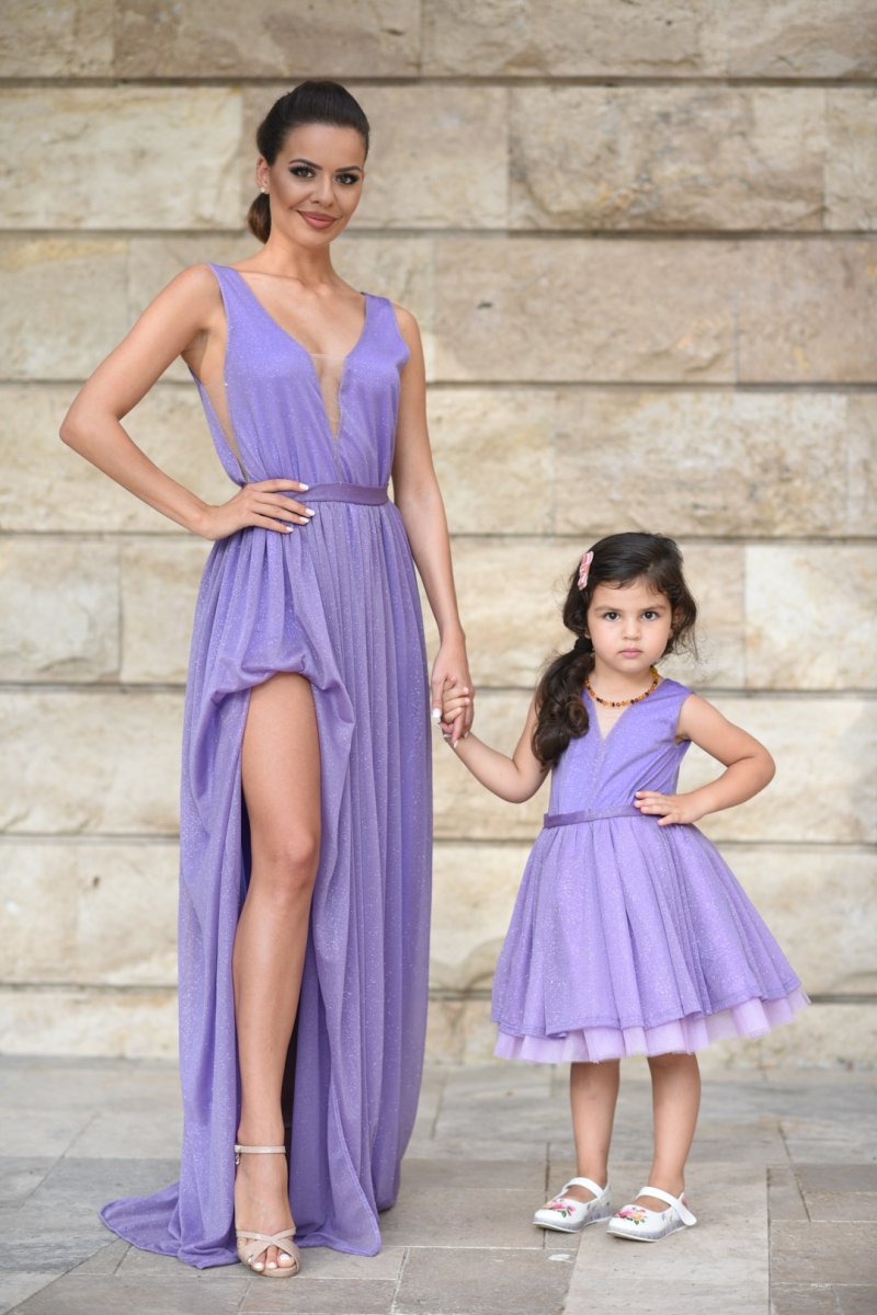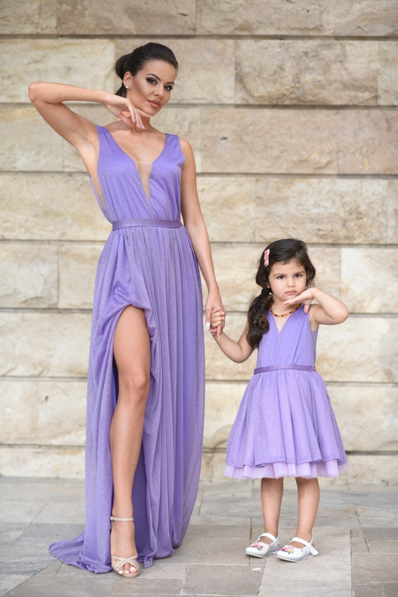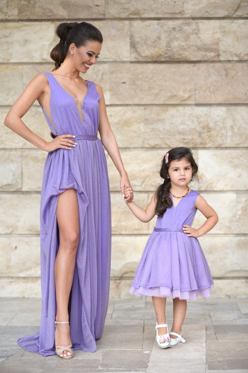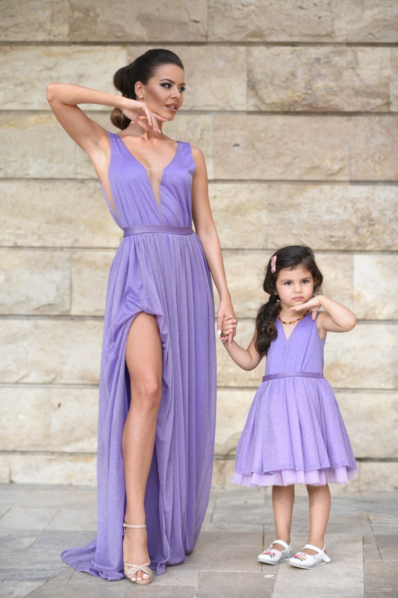Комплект рокли за майка и дъщеря от блестяща лилава материя