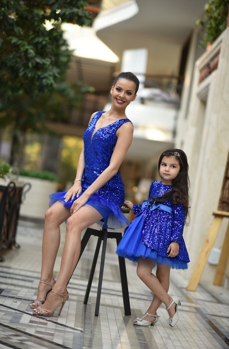 Начало МОДЕЛИ JNSECRET Комплект рокли за майка и дъщеря от пайети в синьо