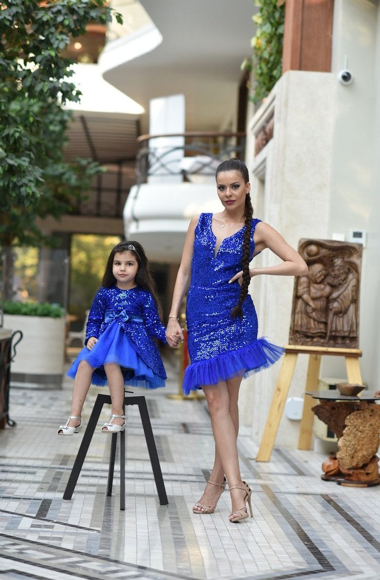 Комплект рокли за майка и дъщеря от пайети в синьо