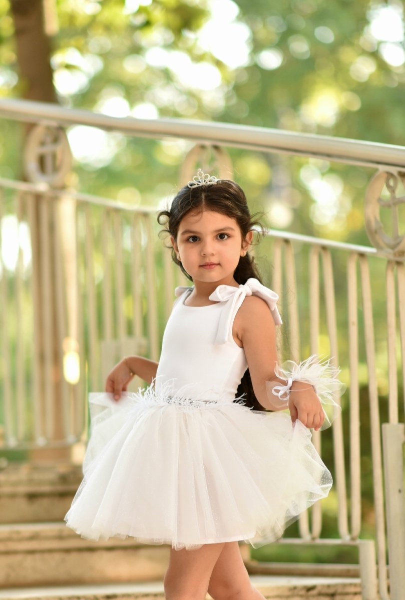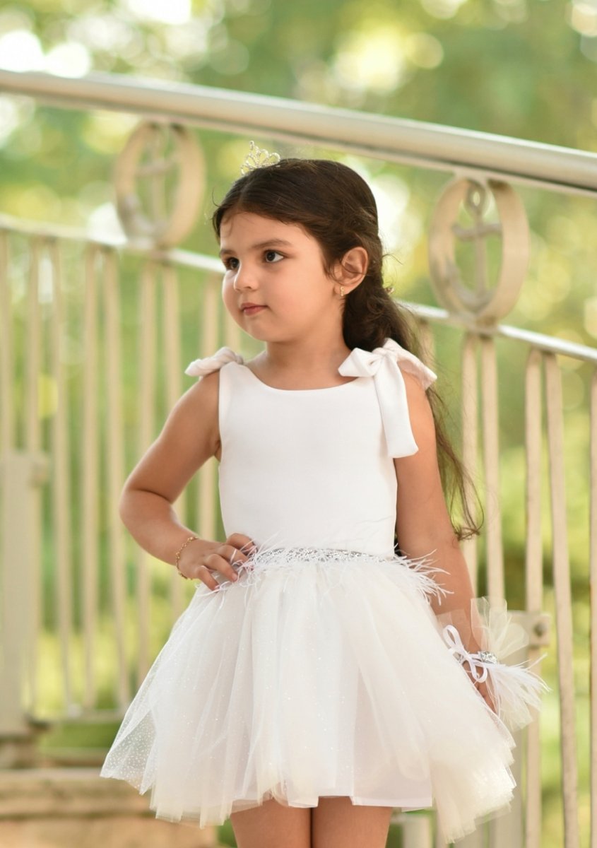 Начало ДЕТСКИ РОКЛИ Детска рокля от тюл в бяло с перца