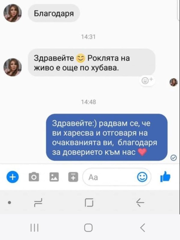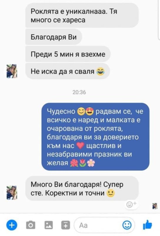 Имате право на връщане или замяна до 14 дни от получаването.
