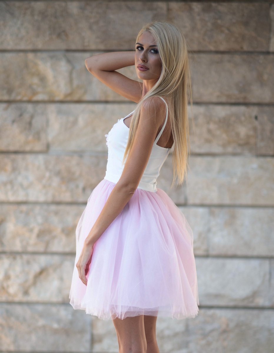 Начало ДАМСКИ РОКЛИ Дамска рокля с тюл и декоративни цветя